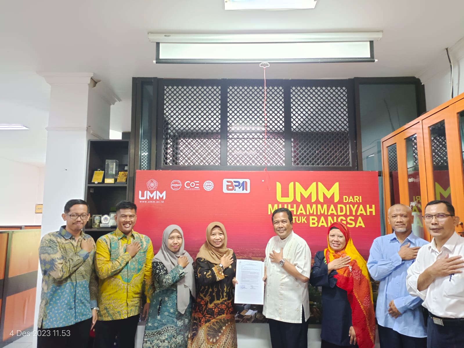 Kedatangan Tim LPM UNARS disambut secara resmi oleh Kepala Badan Penjaminan Mutu Internal (BPMI) Universitas Muhammadiyah Malang, Prof. Ainur Rofiq, M.Kes., beserta jajaran pengelola mutu di lingkungan UMM. Dalam sesi pertemuan dan diskusi, Kepala BPMI UMM memaparkan secara komprehensif mengenai kebijakan, struktur, serta mekanisme pelaksanaan Sistem Penjaminan Mutu Internal yang diterapkan di UMM. Pemaparan tersebut mencakup integrasi siklus PPEPP (Penetapan, Pelaksanaan, Evaluasi, Pengendalian, dan Peningkatan) ke dalam Sistem Informasi Penjaminan Mutu, sehingga proses pengendalian mutu dapat dilakukan secara sistematis, terdokumentasi, dan berbasis data. Selain itu, dijelaskan pula peran sistem informasi dalam mendukung monitoring kinerja program studi, pelaporan mutu, serta pengambilan keputusan strategis oleh pimpinan universitas.